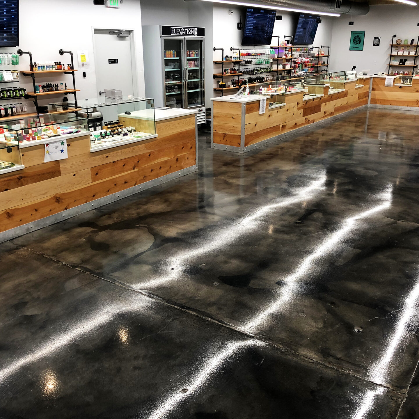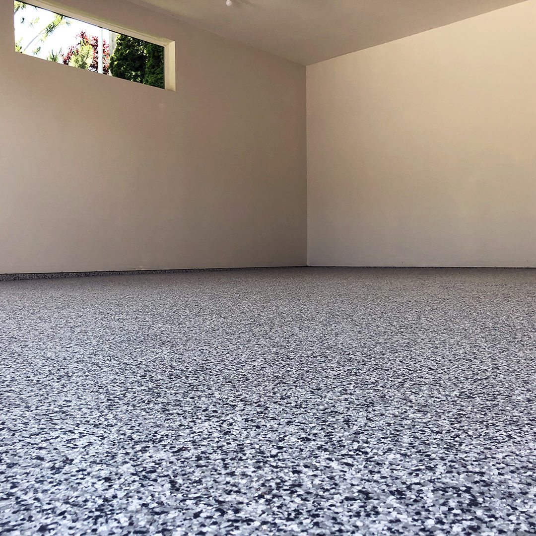 I’m in the process of opening a salon and wanted to do something funky with the cement basement floor. I had no idea what I needed to do but Nick was more than happy to talk me through the process. After following the directions and putting my own little spin on it I now have a gorgeous faux granite sparkly floor that I just can’t get enough of!